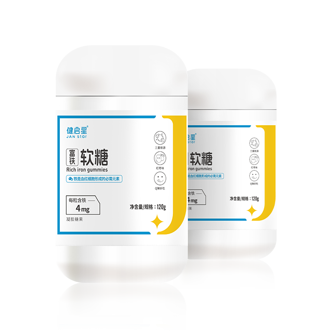 • 每粒软糖含铁4mg,科学合理,安心补充
